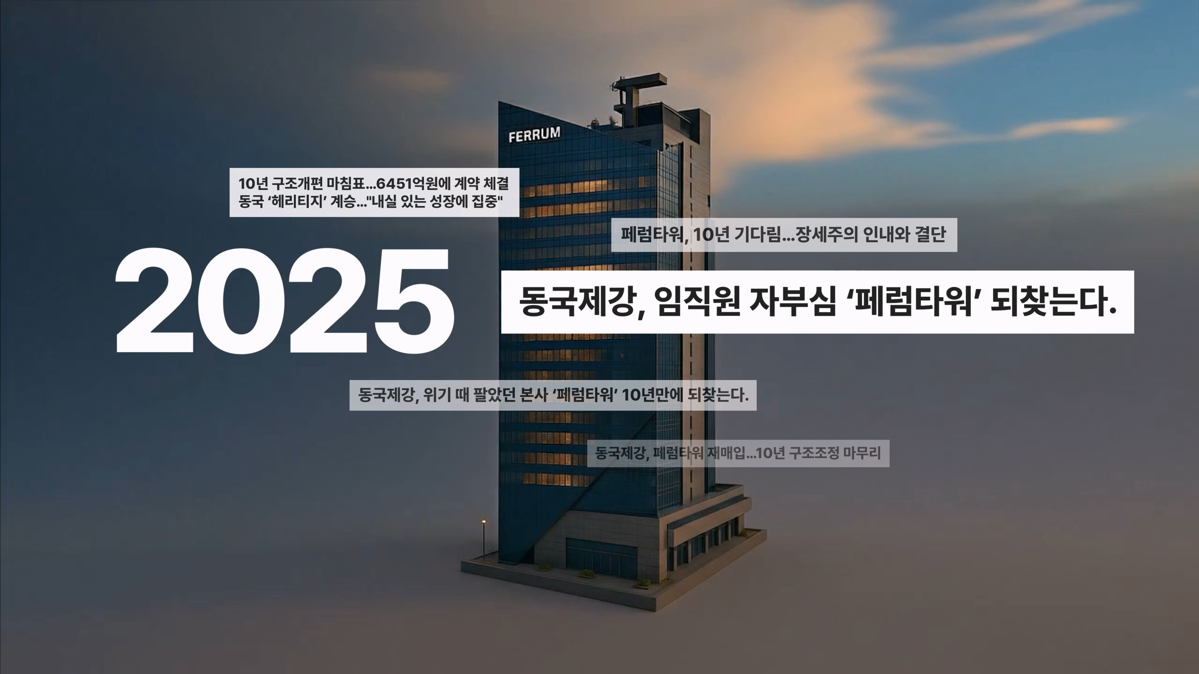This motion graphic video was produced in August 2025 to commemorate Dongkuk Steel Group’s reacquisition of Ferrum Tower.